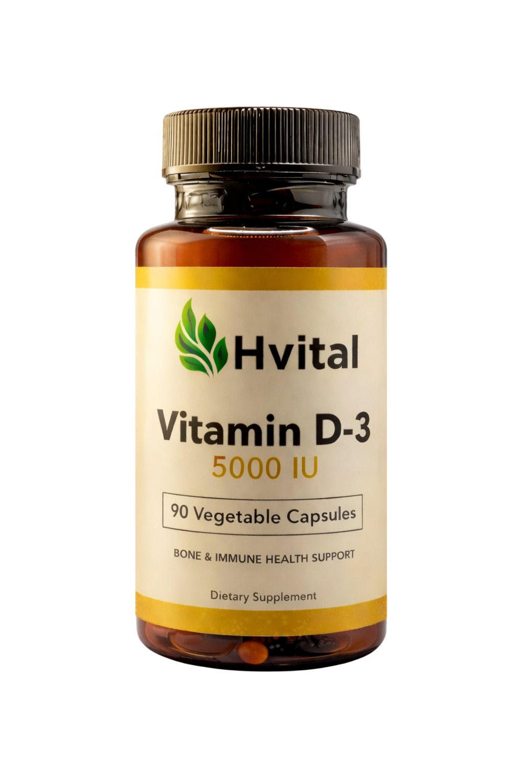Experience the powerful benefits of Hvital Vitamin D-3 5000 IU and strengthen your bones, immune system, and overall vitality. Each bottle contains 90 easy-to-swallow vegetable capsules, carefully crafted to provide a high and potent dose of vitamin D-3 essential for daily well-being. Perfect for those looking to increase their energy, maintain healthy teeth and muscles, and strengthen their body’s natural defenses. The capsules come in a compact bottle, ideal for traveling, making it very convenient to take care of your health wherever you go.